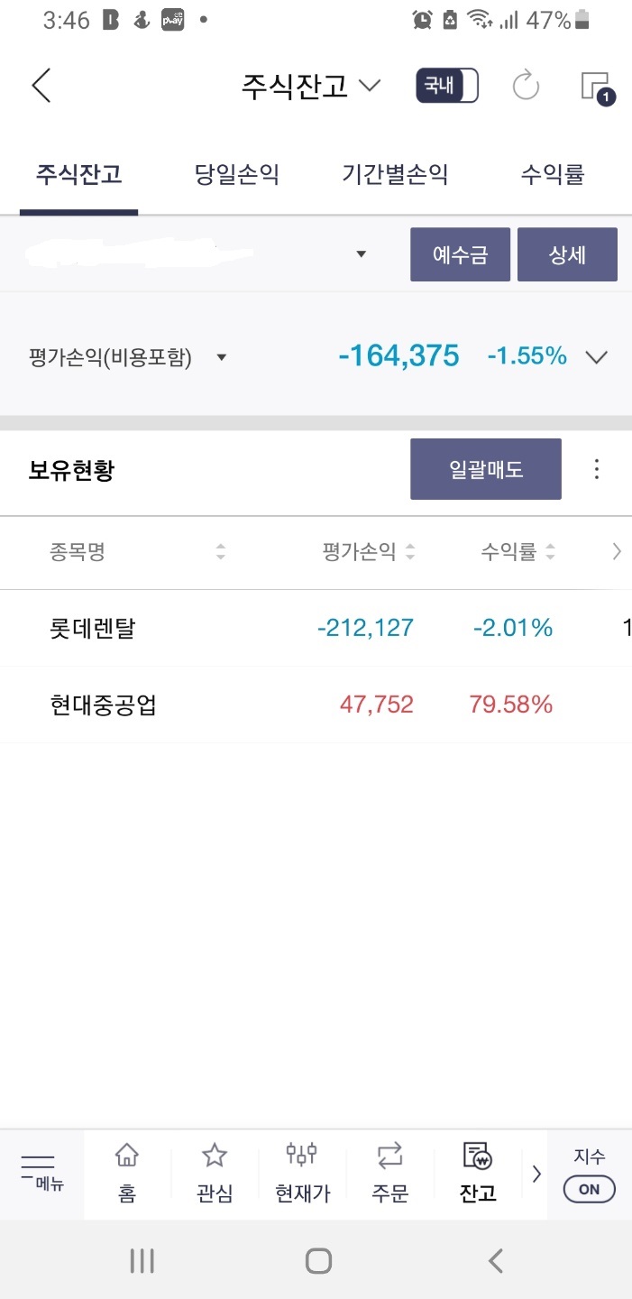 손절하긴에 겁도나고해서, 보유 계좌를 잘 열어보지않았네요~~(전체 종목볼때 순간보기만해습니다ㅋㅋ)