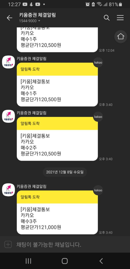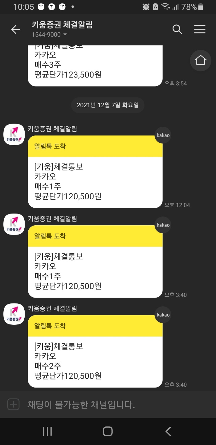 한국투자증권 체결 알림도 있는데 문자로 와서 생략했습니다.
