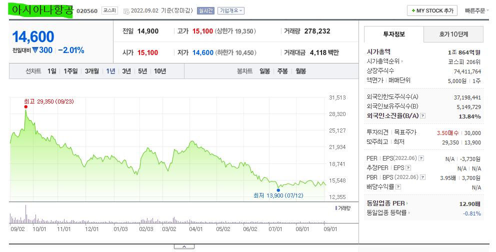 아시아나항공 주가 전망 및 기업 분석 목표 배당금 주식 수익률