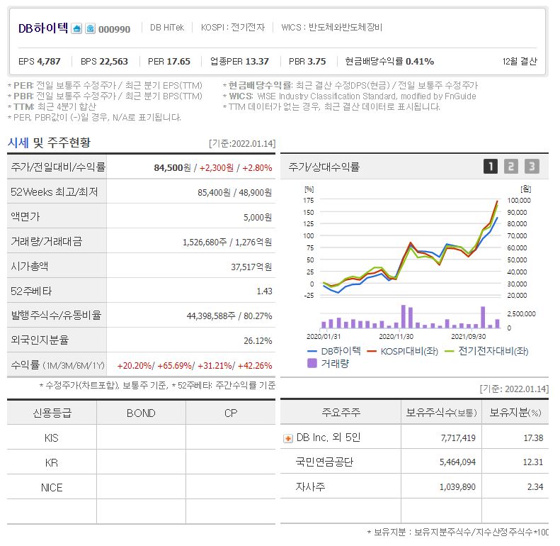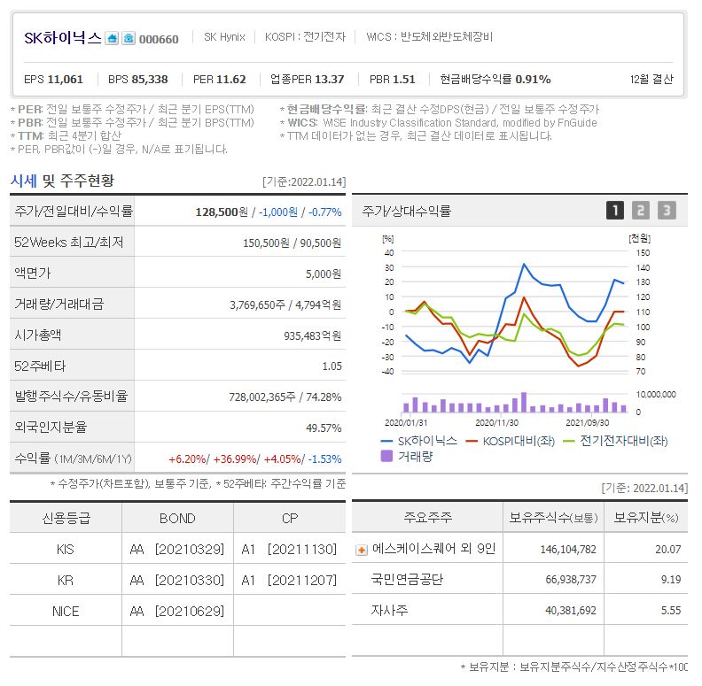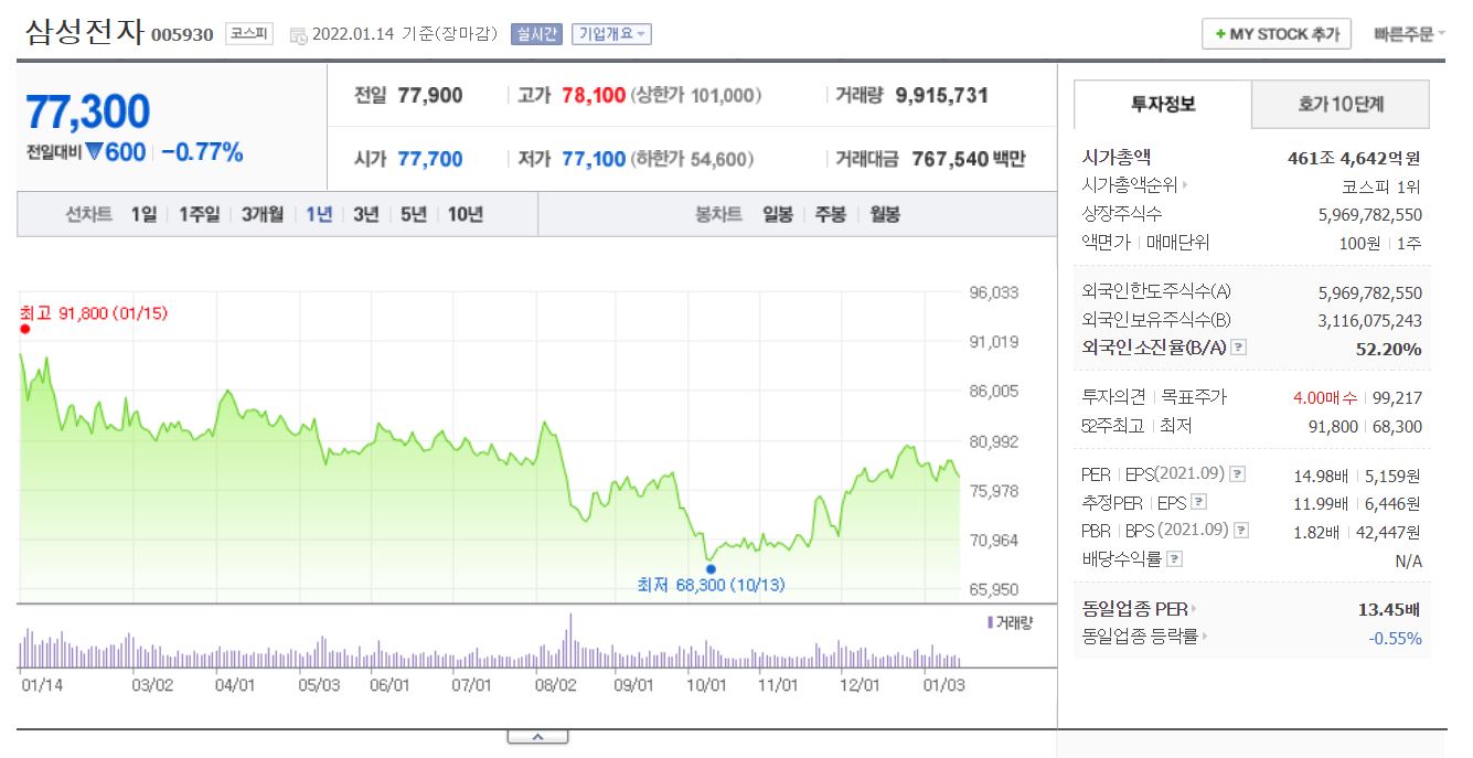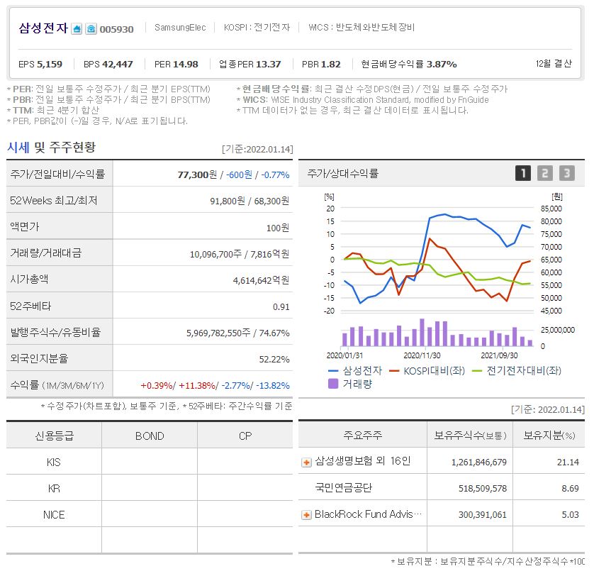 2022년 1월 14일 장 마감 기준